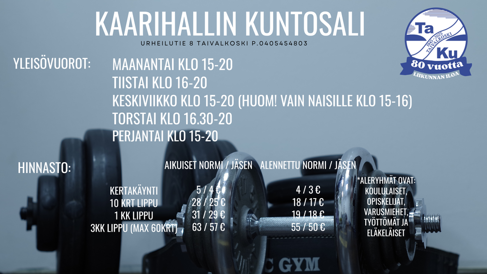 HUOMIO! KUNTOSALI SULJETTU PÄÄSIÄISEN PYHÄT, 3.-6.4.2026