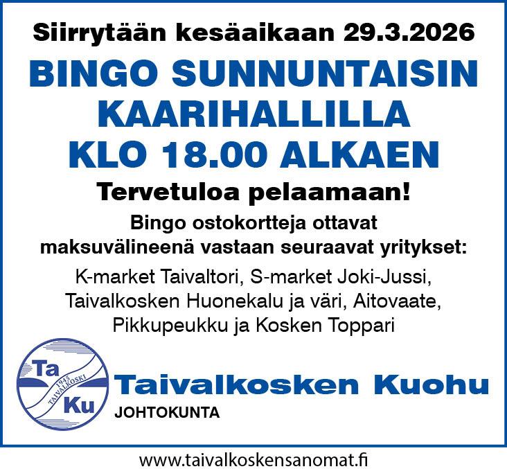 BINGO SIIRTYY KESÄAIKAAN 29.3.2026