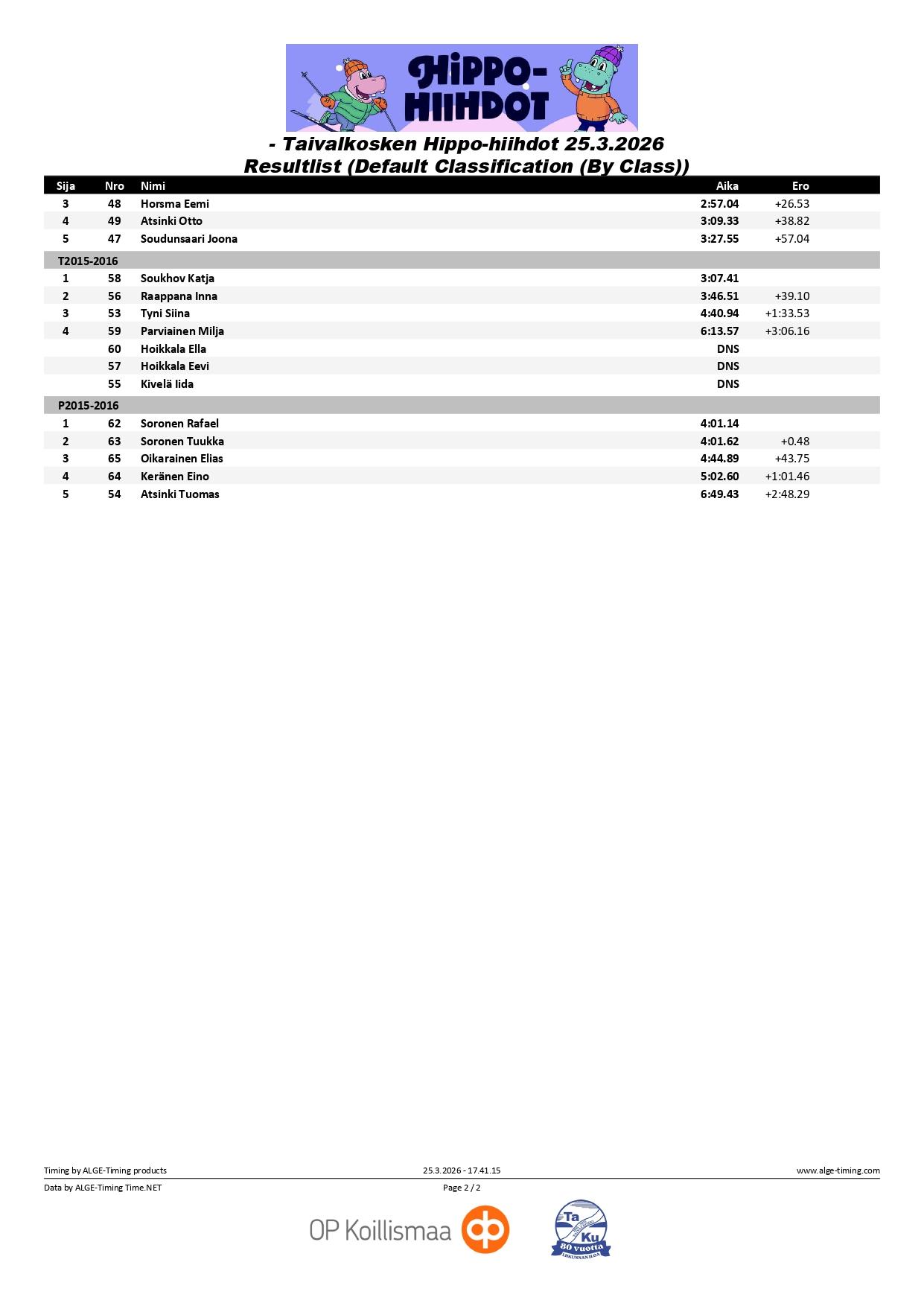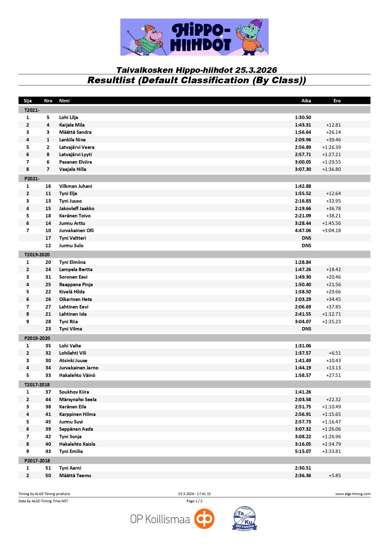 Hippo-hiihtojen tunnelmia ja tuloksia 25.3.2026