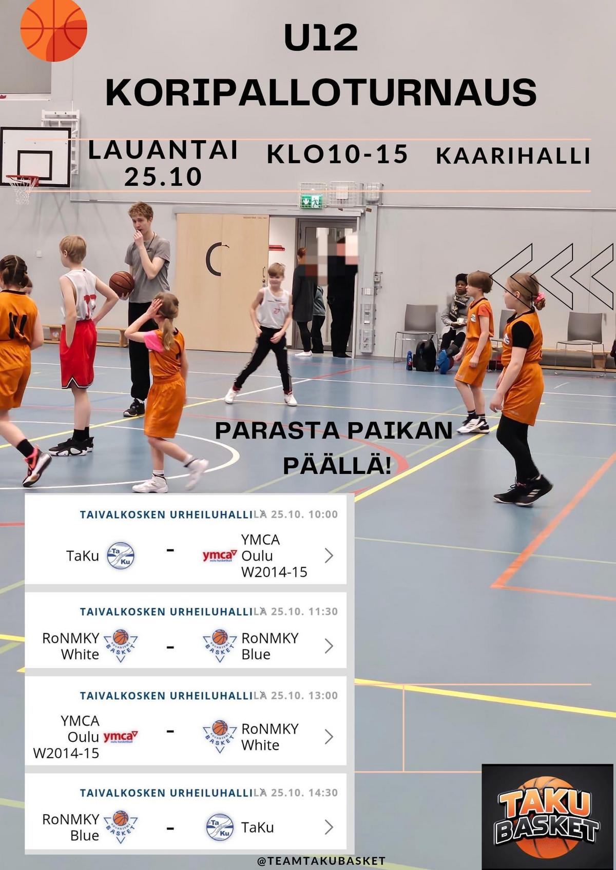 25.10.25 U12 KORIPALLOTURNAUS KAARIHALLILLA, TULOSSA OLEVAT MUUT TURNAUKSET: 22.11. U14, 30.11. U16, 13.12. U10